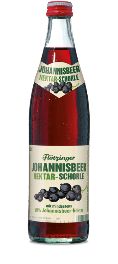 Besonders fruchtig erfrischt auch unsere Johannisbeer-Nektarschorle mit mindestens 50% Fruchtsaft.